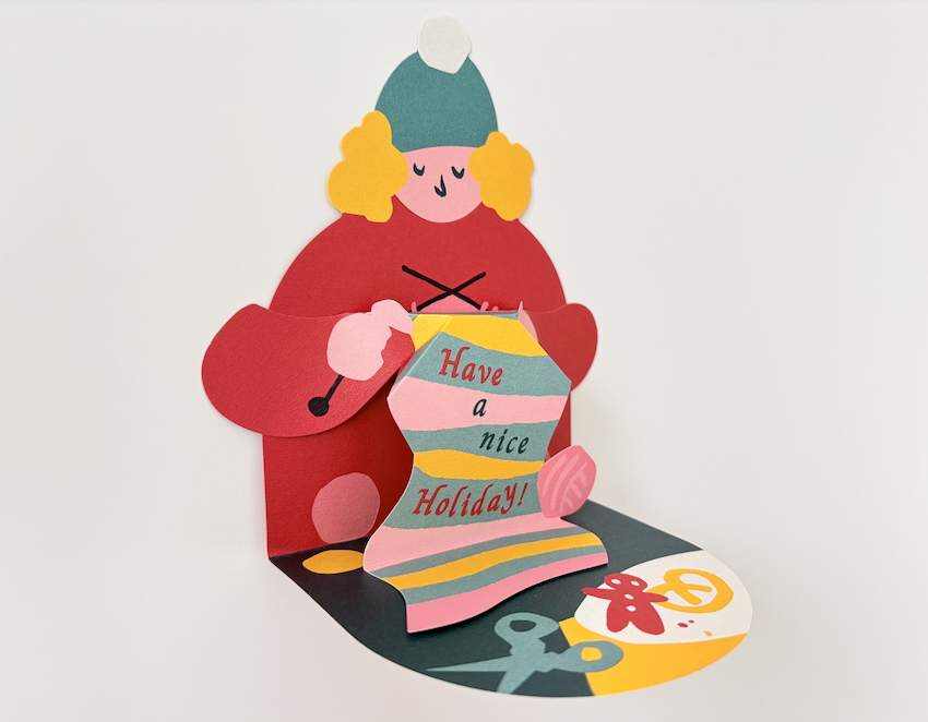 あみもの クリスマスカード/グリーティーングカード | 2025年度のidographの新作クリスマスカードは、編み物です。