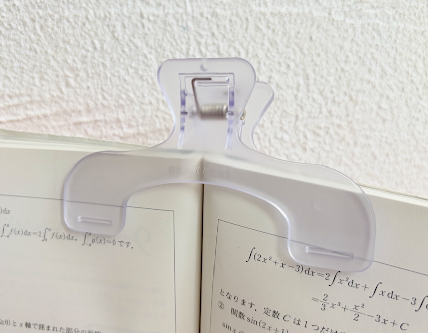 大小の山型ストッパーで、しっかりと挟みます。 クリアカラーなので、後ろの文字も透けるので文字が隠れることなくスムーズに読むことができます。