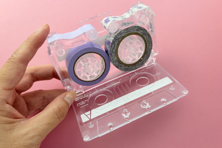 オリジナルアイデアを活かして楽しく便利な製品を幅広く生み出す文具メーカーのサンスター。 機能的な文具から、ワクワク・ドキドキするユニークな文具まで幅広く、スタッフも新作を楽しみにしているメーカーです。 今回は、なんとカセットテープの形をしたテープカッターが登場。 懐かしのA面、B面のシールも見事に再現。マスキングテープが2本セット可能。思わず2度見してしまう、クオリティーの高さです。