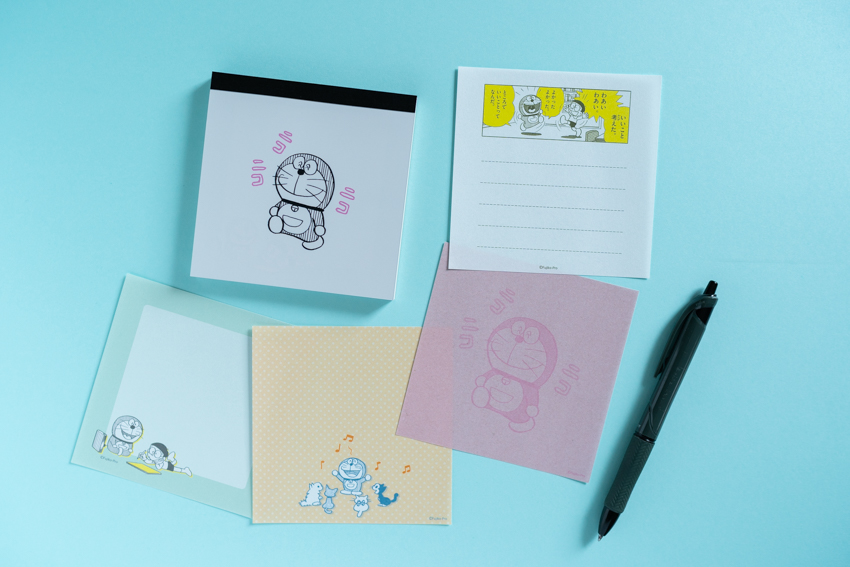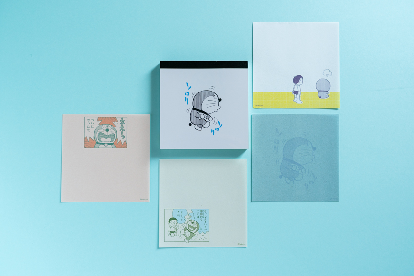 ドラえもん スクエアメモパッド | オノマトペの文字が可愛い、原作コミックならではの魅力が詰まったドラえもんのメモパッド。