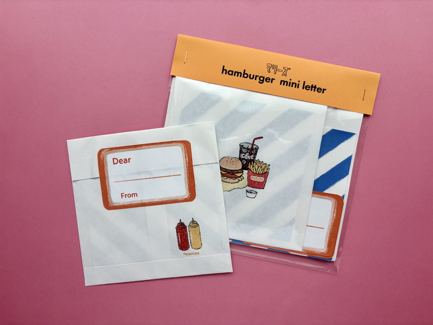 マリーズ ハンバーガー ミニレター | 山田文具店の店内のPOPやフライヤーの際にイラストをお願いしている作家さん、 マリーズさんより味わいある便箋が届きました。