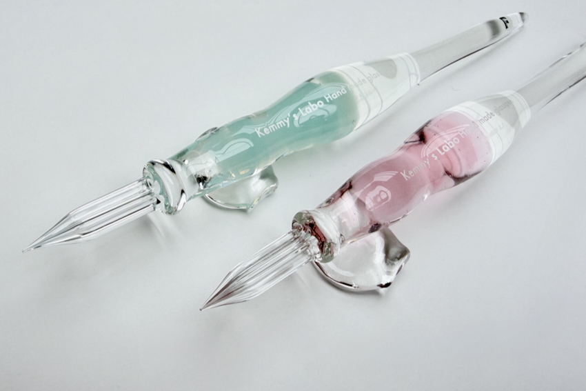 ガラスペンブランド Kemmy's Labo で活躍中の深澤亜希子さんが一本一本手仕事で仕上げた太軸コルセットのガラスペン。